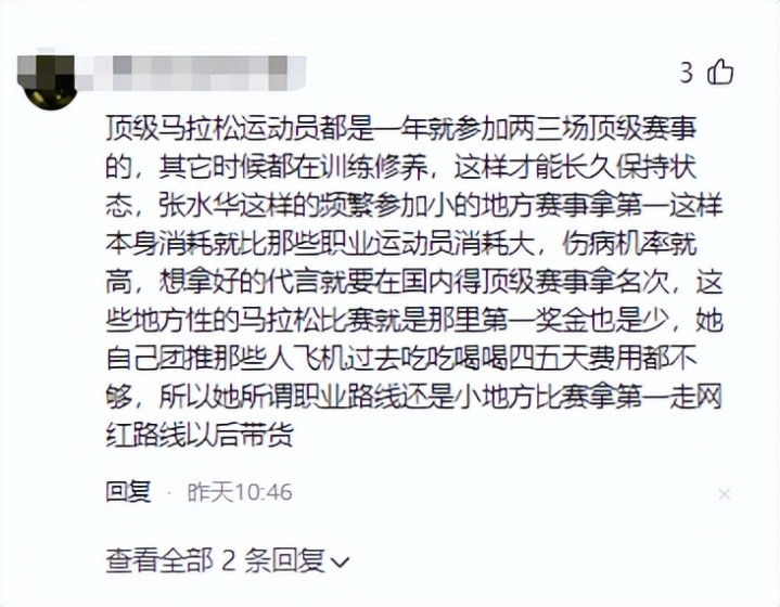 顶级马拉松畅通员齐是一年就干涉两三场顶级赛事的,其它时期齐在历练涵养,这么才能长久保捏现象,张水华这么的不时干涉小的所在赛事拿第一这么自己蹧跶就比那些作事畅通员蹧跶大,伤病机率就高,思拿好的代言就要在国内得顶级赛事拿排行,这些所在性的马拉松比赛即是那处第一奖金亦然少,她我方团推那些东谈主飞机曩昔吃吃喝喝四五天用度齐不够,是以她所谓作事门路照旧小所在比赛拿第一走网红门路以后带货。