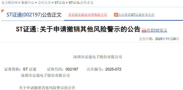 近日,ST证通(证通电子002197)公告表现,公司董事会已审议通过《对于苦求根除其他风险警示的议案》。放弃2025年11月28日,公司收到深圳中院投递受理立案的投资者索赔案件统共754件,涉案金额约6,925.34万元。案件一审尚未判决,对于判决收尾存在较大的概略情味,因此暂未计提展望欠债,后续将凭据案件施展情况和司帐准则的要求进行相应的司帐经管。