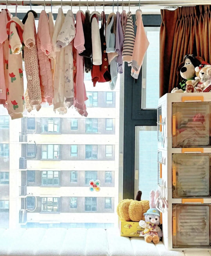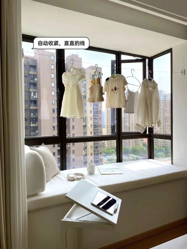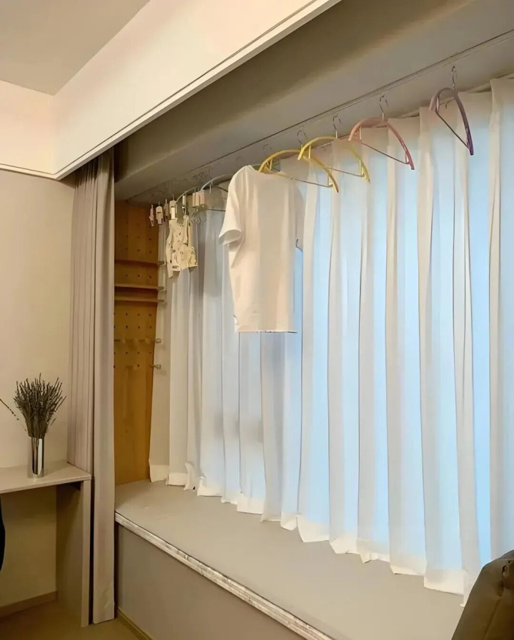 这计议天然看起来有点离谱,实质上它即是“天才之作”,实用性拉满。这样一来,睡前脱下的衣裳和不常洗的衣裳齐能挂在这里,不占空间,还能享受阳光的“浸礼”。