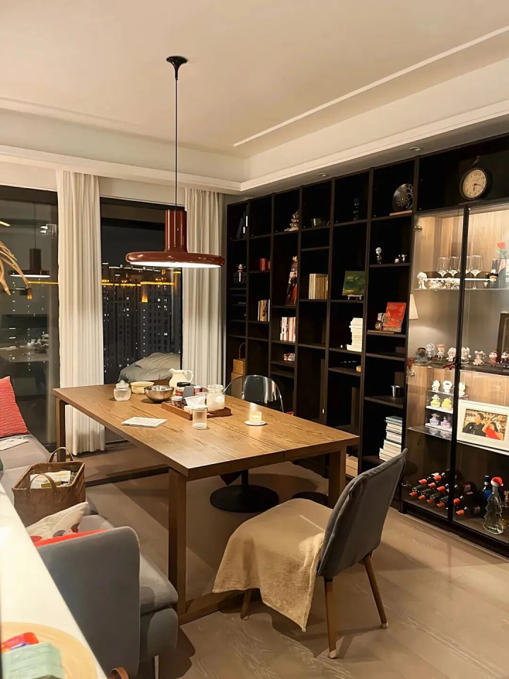 于是,有网友脑洞一开,径直遴荐了把大长桌放在客厅当主角。这样作念,刚启动有可能会合计她是不是想让家里看起来像个餐厅,但入住后就会发现,这个计议的优点简直多得数不完。