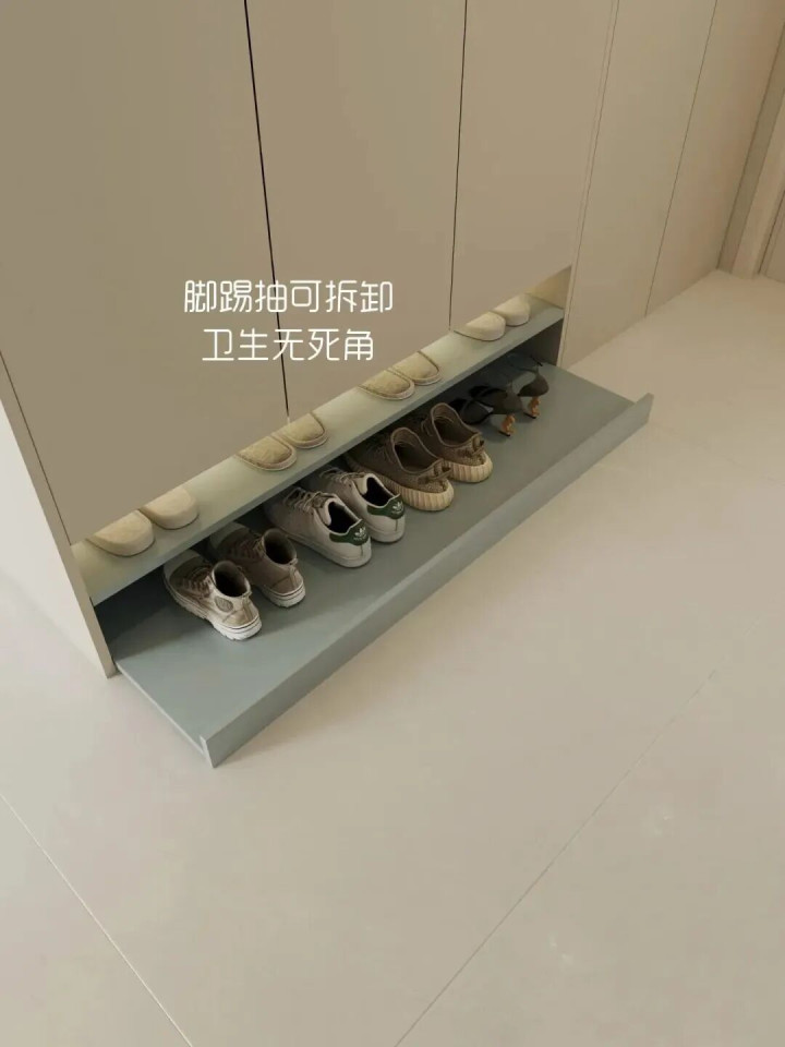 一般来说,鞋柜底部大多是作念成灵通格的,稍稍高档极少的计议可能会加两层。但有网友的脑洞真的是“5G开挂”,竟然计议了一个“踢脚抽”。