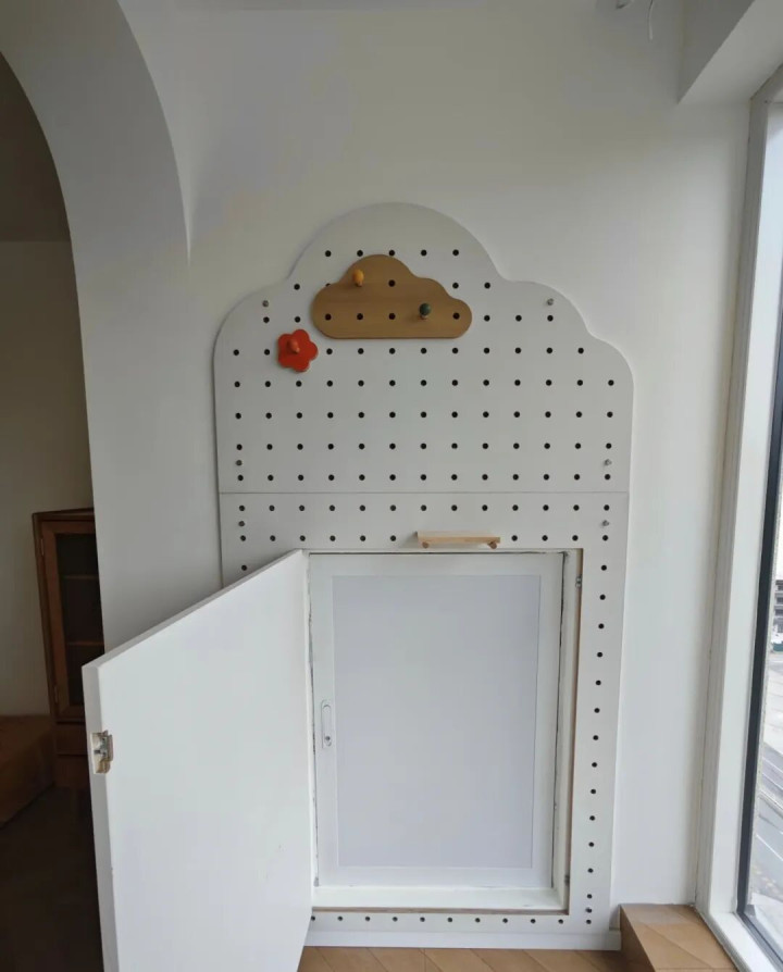 有网友共享:上图位置本来仅仅空调外机的“土地”,天下一般也不会太蔼然它。但他媳妇一翻新,径直把它升级成了“洞洞板墙”,陡然嗅觉不但颜值飙升,功能性也满分。